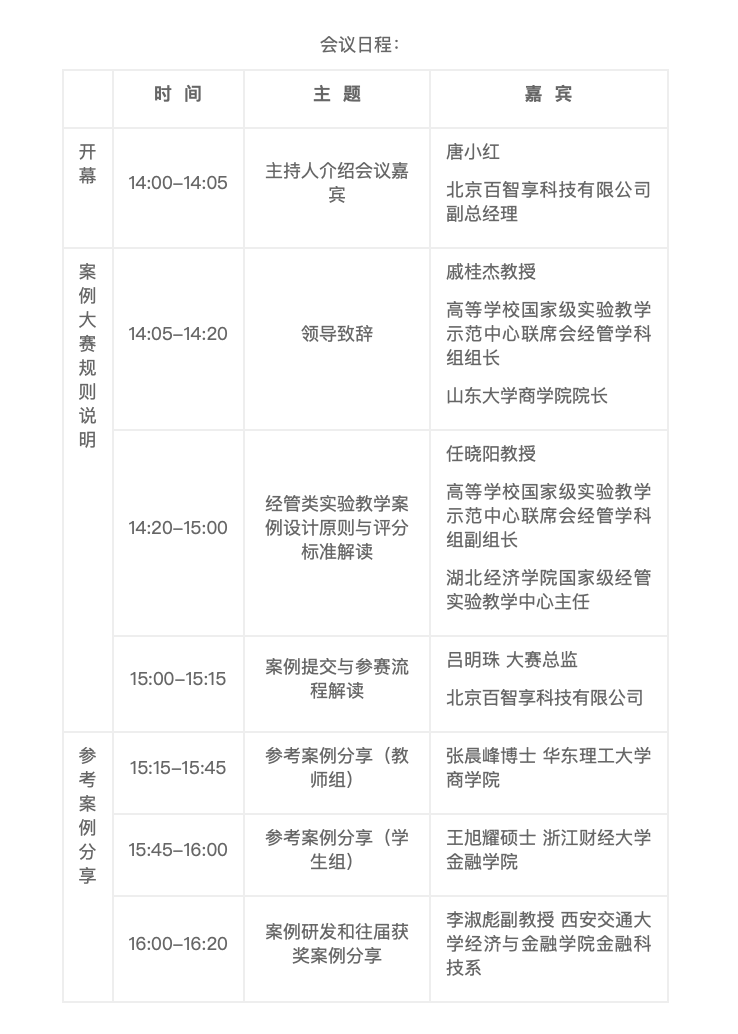 第五届“智享杯”全国高校经管类实验教学案例大赛进入案例征集阶段。本届大赛主打财经数据案例。2021.年8月29日,为提升高校教师和学生的案例研发水平,深入理解经管类数据案例的设计与应用,案例大赛组委会邀请学科组领导及业内专家,开展线上案例大赛规则说明暨参考案例分享会。本次说明会由大赛组委会主办,北京百智享科技有限公司承办。参加直播的师生超过2000人次。