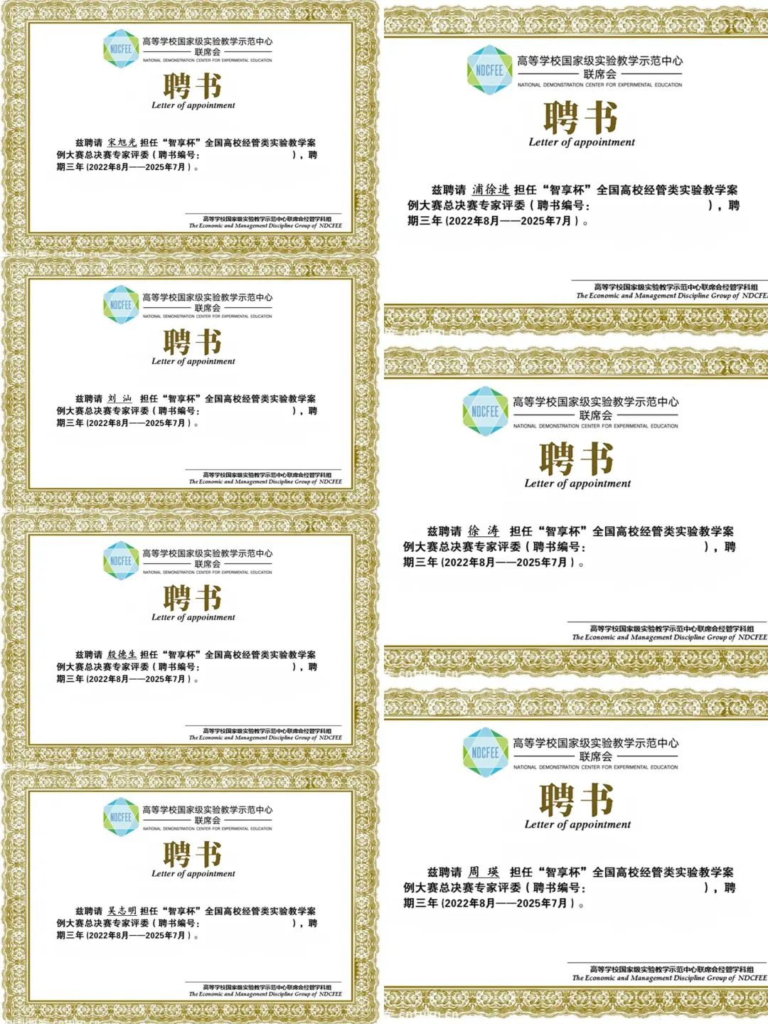 随后,戚桂杰教授介绍专家评委并代表家级实验教学示范中心联席会经管学科组组长颁发聘书。本届决赛共聘请14位评委,教师组和学生组各7位。
