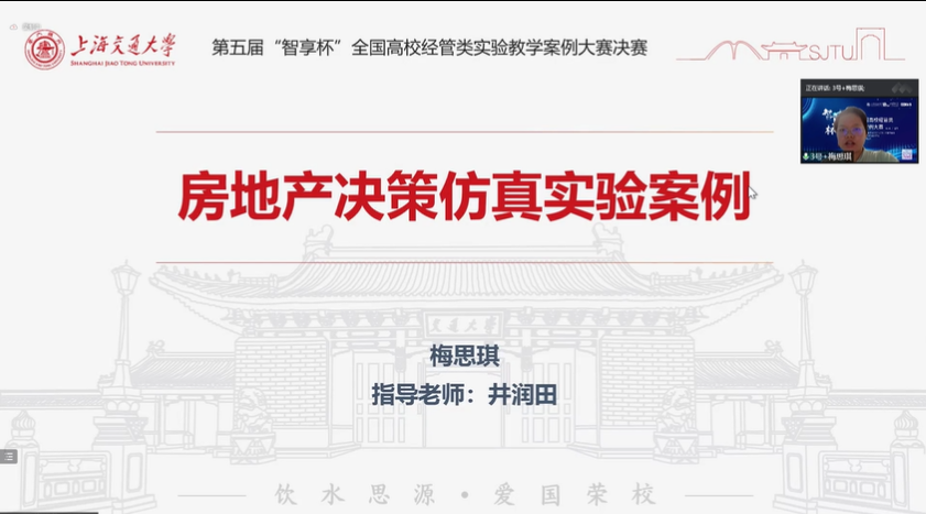 2022年8月6日,第五届“智享杯”全国高校经管类实验教学案例大赛总决赛在上海交通大学安泰经济与管理学院举办。根据防疫要求,决赛以线上形式举行,并在“财经云学堂”全程直播。大赛由高等学校国家级实验教学示范中心联席会经管学科组主办,上海交通大学安泰经济与管理学院承办,北京百智享科技有限公司协办经过学科组与各高校专家匿名综合评审后,最终教师组与学生组各15支团队,脱颖而出进入决赛答辩环节。