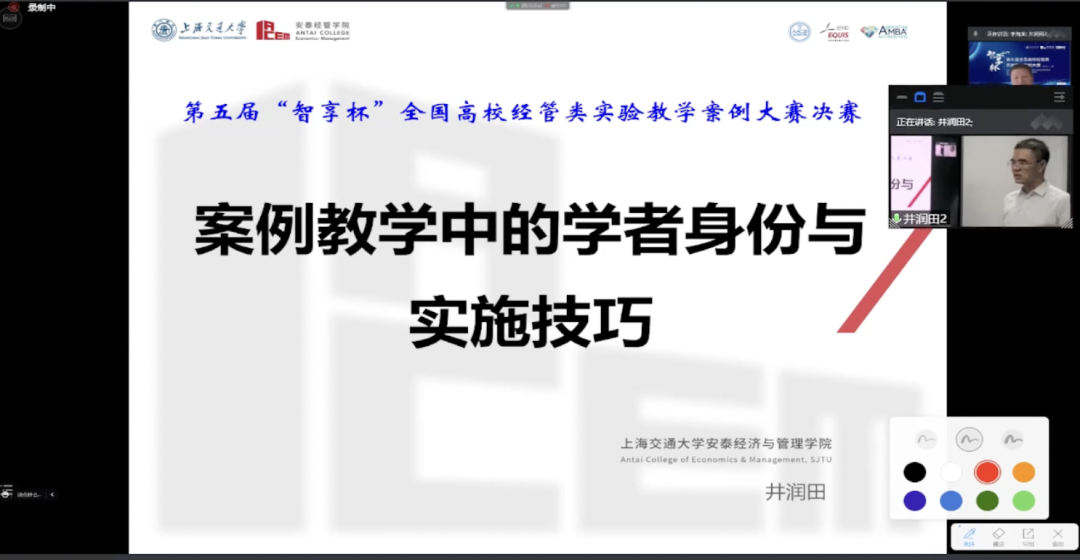 井润田教授回顾了往届大赛历程,表示经济管理类的实验教学一直扮演着很重要的角色,且影响力不断扩大。第四届案例大赛上,时任上海交通大学安泰经管学院党委书记杨颉申请并获准承办第五届案例大赛。原计划2020年在线下承办大赛,后因疫情延期,2021年再次延期。面对疫情的不确定性,最终选择创新比赛方式,以线上的方式进行。最后感谢学科组及百智享公司与校方在筹备赛事期间的密切交流协作,保证了线上赛事平稳进行。