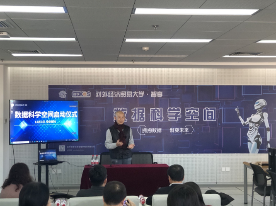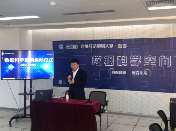 2020年12月3日,“对外经济贸易大学·智享数据科学空间”启动仪式在对外经济贸易大学圆满召开,本次启动仪式采用线上与线下结合的模式进行。对外经济贸易大学金融学院副院长张海洋教授、南京大学商学院实验室与计算机办公室主任周耿教授、中国传媒大学计算机与网络安全学院李春芳教授、首都经济贸易大学图书馆马艳林馆长、技术部主任刘海翼老师、中国高等教育学会高等财经教育分会常务副秘书长李海龙先生、对外经济贸易大学图书馆邱小红馆长、对外经济贸易大学图书馆电子阅览室主管涂育红老师、北京百智享科技有限公司唐小红副总经理,并有国内多所财经高校图书馆领导与馆员线上参加启动仪式。同时由对外经济贸大学图书馆信息咨询部主任李慧老师担任主持人,本次启动仪式由七部分组成: