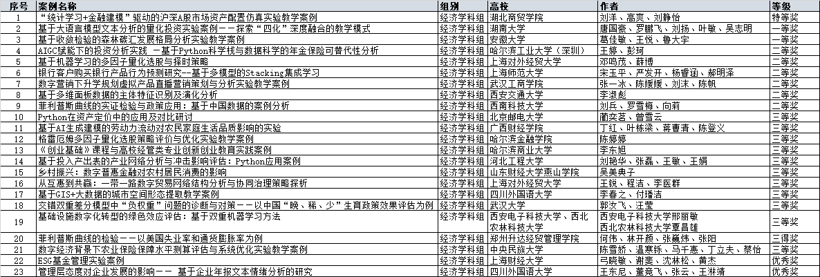 第七届“智享杯”全国高校经管类实验教学案例大赛全国总决赛教师经济学科组获奖名单