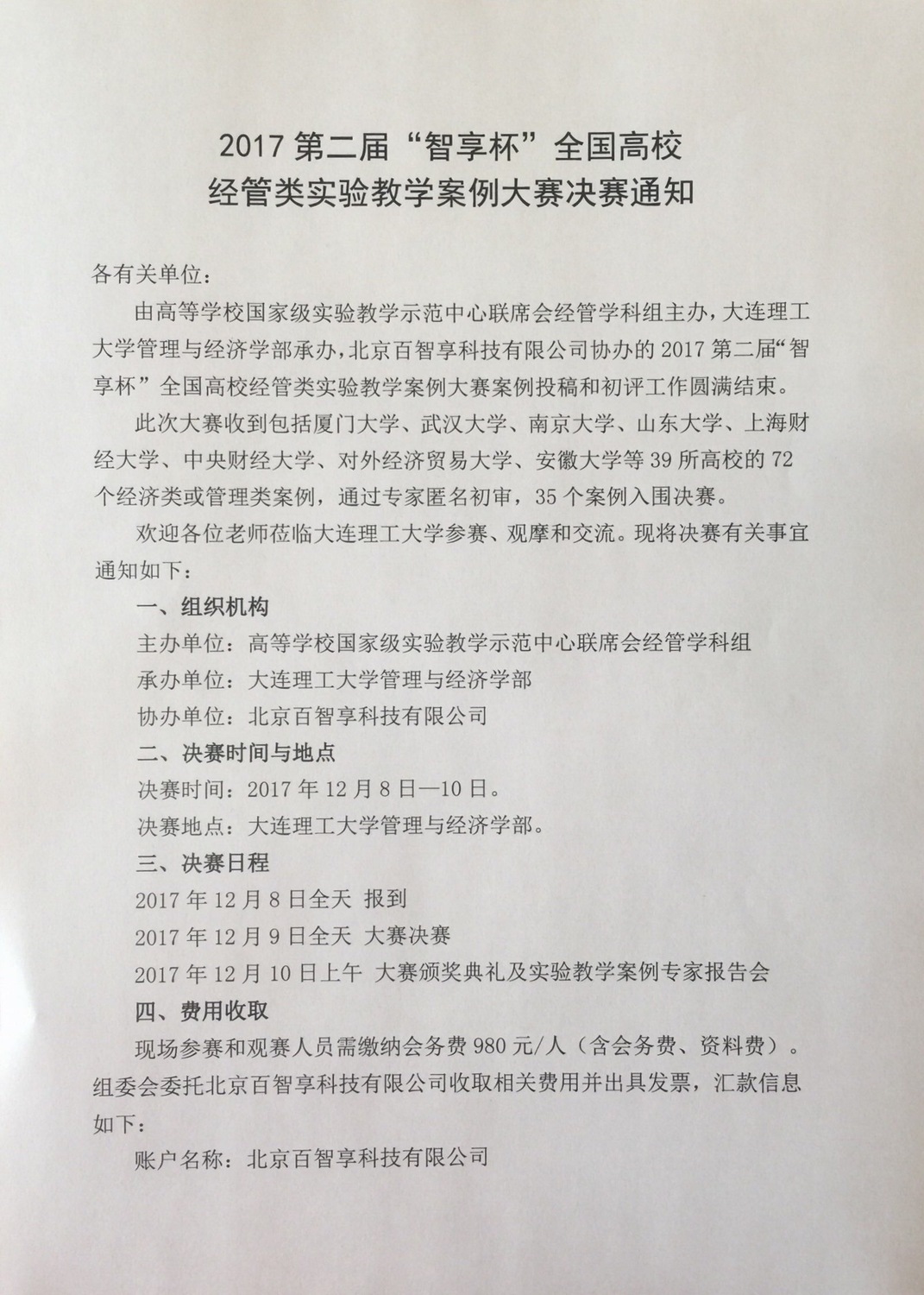 2017第二届“智享杯”全国高校经管类实验教学案例大赛决赛通知