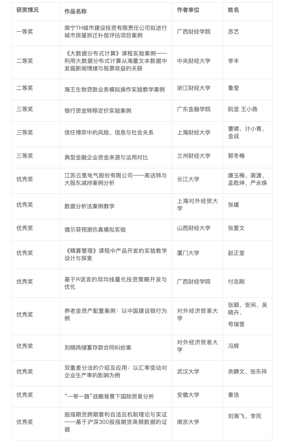 第二届“智享杯”案例大赛经济组获奖名单